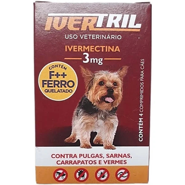 1 comprimido a cada 15kg de peso vivo. Como usar o IverTril 3 mg? IverTril 3mg deve ser administrado diretamente por via oral, misturando à ração, carne ou qualquer outro alimento. O uso de IverTril 3mg não compromete a rotina do animal, não havendo necessidade de jejum prévio ou qualquer alteração na sua alimentação .